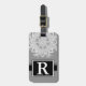 Spot your luggage easily with a modern silver metallic and black and white tag. Simply update the monogram and contact information on the back side to ensure any lost baggage is returned to you.