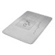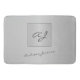 Trendy luxury exclusive looking monogrammed bath mat featuring a faux silver square over a stylish classy metallic light grey background. + Personalize it with your black script signature name or family name and monogram name initials.