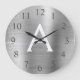 Silver faux Metallic Monogram Name and Initial Serving Wall Clock. The Wall Clock makes the perfect gift for someone who loves silver stainless steel.