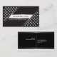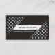 Silver metallic studs and diagonal stripes black white business cards, featuring two triangles covered with metallic studs on two corners of the card, diagonal silver stripes and a white band in the centre with your name. Black background.