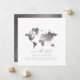Silver effect watercolor world map wedding save the date card. With a beautiful metallic silver world map, moveable heart to position over your location of choice and space for name location and additional details. Ideal for foreign location weddings or just because you love your state