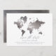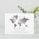 Metallic silver effect world map wedding save the date card. With a beautiful classic, metallic silver world map, moveable heart to position over your location of choice and space for name location and additional details. Ideal for foreign location weddings or just because you love your state