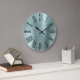 Silver Mint Brushed Foil Black Roman Numerals Large Clock