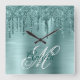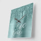 Silver Mint Brushed Foil Fancy Monogram Square Wall Clock
