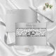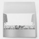 This elegant silver metallic envelope design matches the glamorous silver damask wedding invitations. The glitter damask across the flap and the closure is tied together with silver wedding rings. The flap has the monogram of the bride and groom in elegant script font.