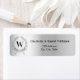 A faux silver looking background. Decorated with a wreath. Personalize and add your name, address and family monogram initial.