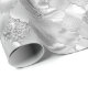 This elegant and glamorous wrapping paper is versatile and can be used for giving gifts or art and craft projects. It is ideal for any occasion such as birthdays, weddings, bridal showers, baby showers, anniversaries or general gifts. The design features an arabesque moroccan quatrefoil pattern on a silver background. The faux satin, foil and glitter texture adds a touch of chic and sophistication.