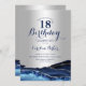 Silver Navy Blue Agate Marble 18th Birthday Invitation