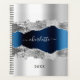 Silver navy blue agate marble name elegant 2026 planner