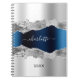 Faux silver and navy blue metal and agate, marble stone print as background Personalize and add your name. The name is written with a modern hand lettered style script.