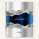 Faux silver and navy blue metal and agate, marble stone print as background Personalize and add your name. The name is written with a modern hand lettered style script.