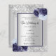Silver navy blue floral wedding invitation