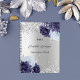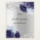 Faux silver looking background decorated with navy blue and light blue florals, flowers, and faux silver glitter, sparkles. Personalize and a year, name and a title/text