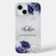 Silver navy blue florals elegant monogram name Case-Mate iPhone case