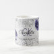 Silver navy blue florals elegant monogram name coffee mug