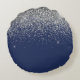 Silver Navy Blue Girly Glitter Sparkle Monogram Round Pillow