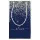 Silver Navy Blue Glitter Girly Monogram Name Small Gift Bag