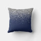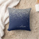 Silver Navy Blue Glitter Girly Monogram Name Throw Pillow