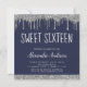 Silver Navy Blue Glitter Sweet Sixteen Birthday Invitation