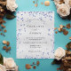 A modern, elegant and minimalist wedding invitation. Faux silver metallic looking background decorated with small navy blue hearts. Personalize and add your names and wedding details. Black colored letters.