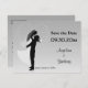 This design features a silver ombre background with a silhouette of a bride and groom. There is a cluster of stars in the shape of a heart behind the happy couple. The reverse side of this elegant design has a simple ombre background. There is plenty of customizable text on both the front and back of this post card for you to conveniently personalize with your own information. Shown here as a wedding Save The Date reminder, this versatile design can be customized for wedding showers or anniversaries too! We have this design available in a variety of colors and on a variety of matching products!