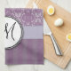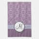 Silver on Lavender Damask with Stripes & Monogram Kitchen Towel