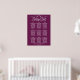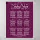Make your wedding reception beautiful with this 9 table seating chart. It features a simple yet elegant design with white text on a cassis purple or magenta colored background with a silver faux foil floral border. This chart shows table assignments for 90 guests.