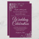 These affordable, budget friendly wedding invitations are the perfect choice for class, style, and beauty on a budget. The larger sized design features pale gray text on a magenta, cassis purple, or berry colored background with ornate silver gray curls and swirls in the corners. The typography includes fancy script lettering for a style that is at once simple and elegant. Wonderful way to invite your friends and family to share in your joy on your special day without breaking the bank.