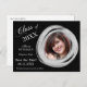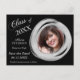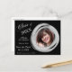 There's an elegant silver paint brushed circle frame for your photograph on the right side of this "Save the Date" graduation announcement, with your custom text in matching silver gray at the left. Everything is placed on a dramatic black background. The back of the card has an additional text field if needed. All the text on the front is also easily customized.