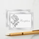 This faux embossed silver peony on white linen reception enclosure card matches the 25th wedding anniversary invitation and other items shown below. It can also be customized to be a map or directions card.