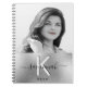 A faux silver metallic looking background. Personalize and add your own photo, a name, monogram letter and a year. The name is written in black with a large modern hand lettered style script with swashes. The monogram letter in white. For taking notes, as a dirary, journaling, school, work your personal/family life. To keep the swashes only delete the sample name, leave the spaces or emoji's in front and after the name