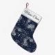 Silver Pinecone Navy Blue Personalized Snowy Small Christmas Stocking