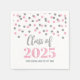 Customizable graduation napkins for class of 2025 with glamorous silver and pink confetti pattern.