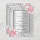 Faux silver looking background decorated with blush pink and white florals, flowers and faux silver glitter, sparkles. Personalize and add your names and wedding details. Black letters.
