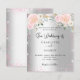 A faux silver metallic looking background with pink faux glitter, sparkles, and blush pink florals. Personalize and add your names and details.