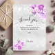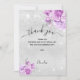 A faux silver looking background, decorated with pastel pink florals, flowers. Large hand lettered script with swashes and the text: Thank You. Personalize and add your thank you note and name.