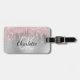 Silver pink glitter drips monogram luggage tag