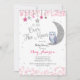 Silver Pink Owl Moon Baby Shower Invitation