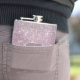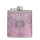 This elegant flask has a pretty silver star sparkle pattern on a jewel like rose pink background. Your three letter monogram is in silver at the center of a silver lined dusty pink ornate banner. Very classy! *Please note - the image is printed and does not contain glitter.