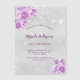 A faux silver looking background with faux silver sparkles and pink and violet flowers. Personalize and add a name and party details.