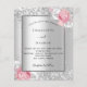 Faux silver looking background decorated with blush pink and white florals, flowers and faux silver glitter, sparkles. Personalize and add your names and wedding details. Black letters.