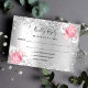 A faux silver metallic looking background, decorated with sparkling faux glitter and blush pink and white florals. Personalize and add the reply by date and your names.