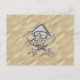 A silver chrome like nautical pirate skull applique on a sandy beach decor. An original gift sure to make an impression on, or off the boat.
