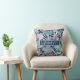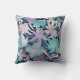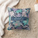 Silver Purple Blue Floral Leaves Monogram Throw Pillow