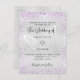 A modern, elegant wedding invitation. Faux silver metallic looking background decorated with purple faux glitter dust and a butterlfy as watermark. Personalize and add your names and wedding details. Black colored letters.