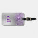 A faux silver looking background, decorated with purple faux glitter dust. Purple colored letters. Personalize and add your monogram letters, initials and name, your contact information on the back.