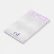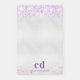 A faux silver metallic looking background. Decorated with purple faux glitter dust. Personalize and add your name and monogram initials. Purple colored letters.