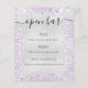 A faux silver loking background decorated with purple, violet faux glitter, sparkles. With the text: Open bar. Personalize and add your bar menu.