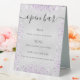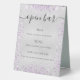 Silver purple glitter sparkles script bar menu table tent