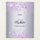 A faux silver looking background decorated with purple sparkles. Personalize and add your first name, monogram initials, full name and a year.